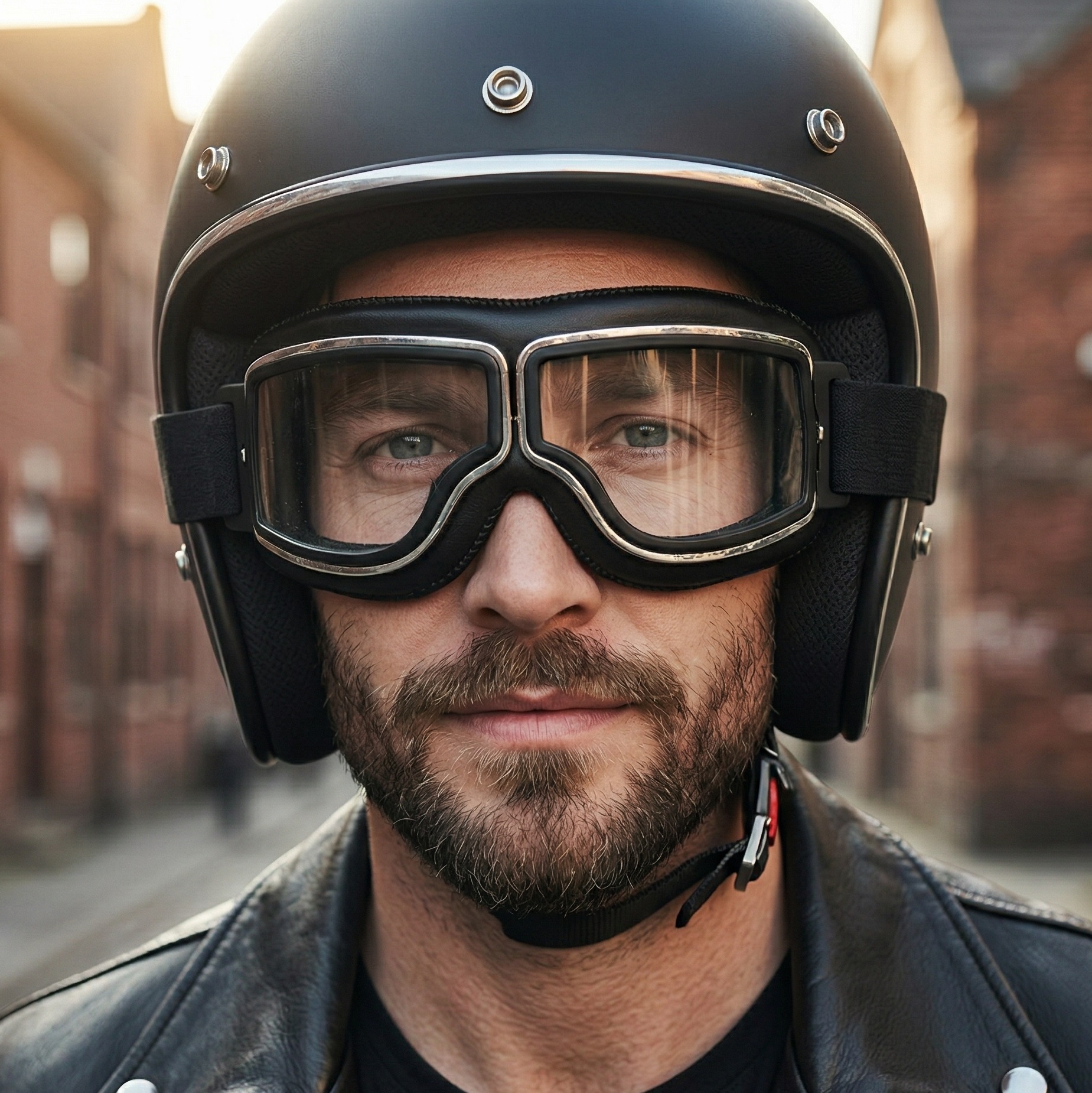 • Óculos estilo Vintage/ Old School / Retrô, elaborados com proteção à prova de vento e poeira, oferecendo proteção aos olhos e segurança na condução.