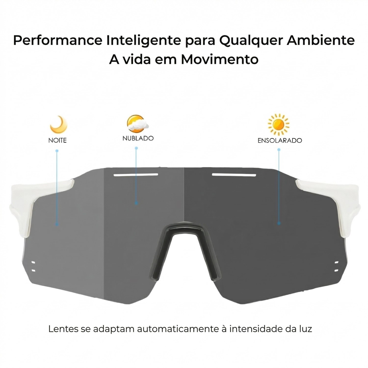Com adaptação automática à luminosidade, você dispensa a troca de lentes ou óculos, mantendo o foco total na sua performance.