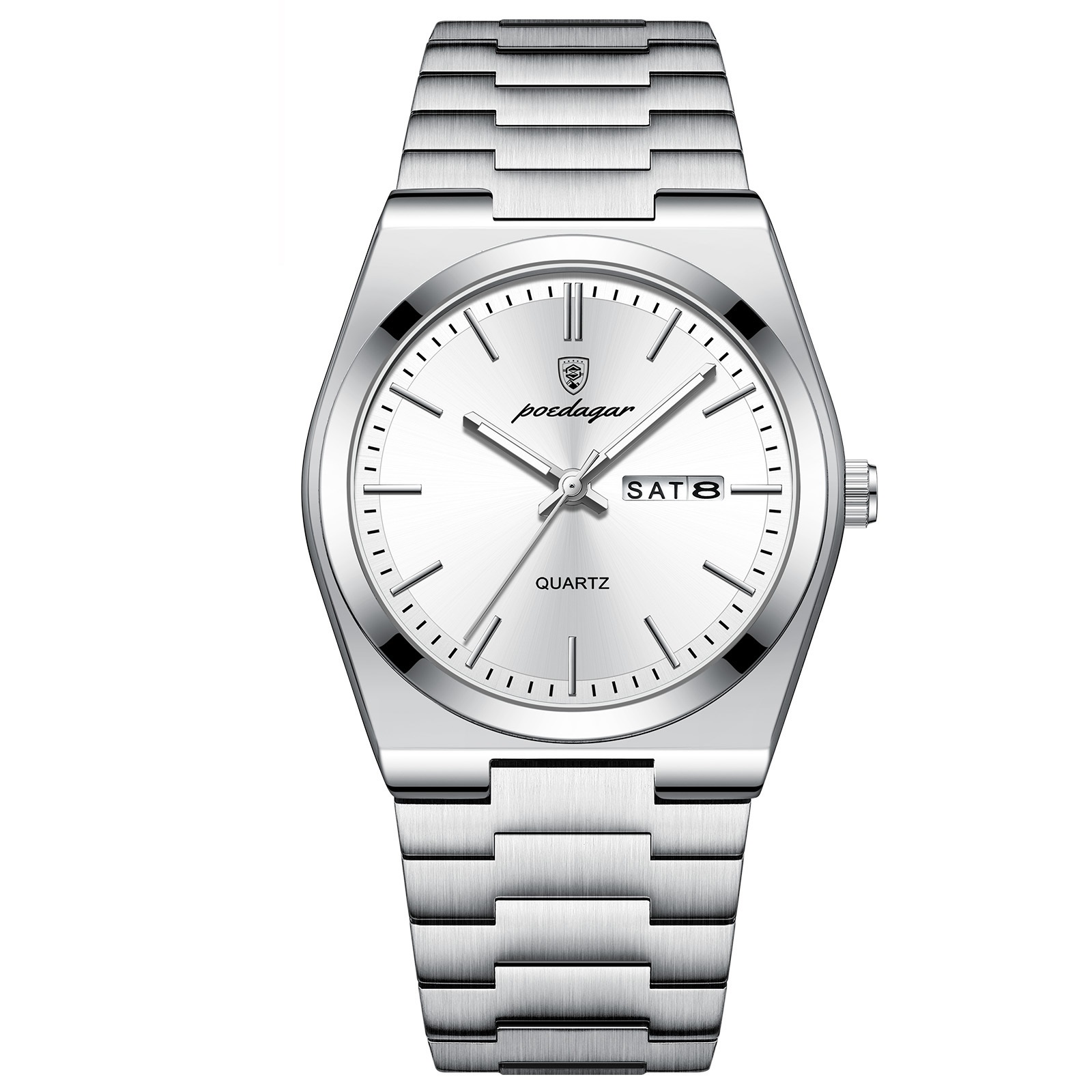 Relógio Poedagar Masculino Quartzo Prata Aço Inoxidável Luxo